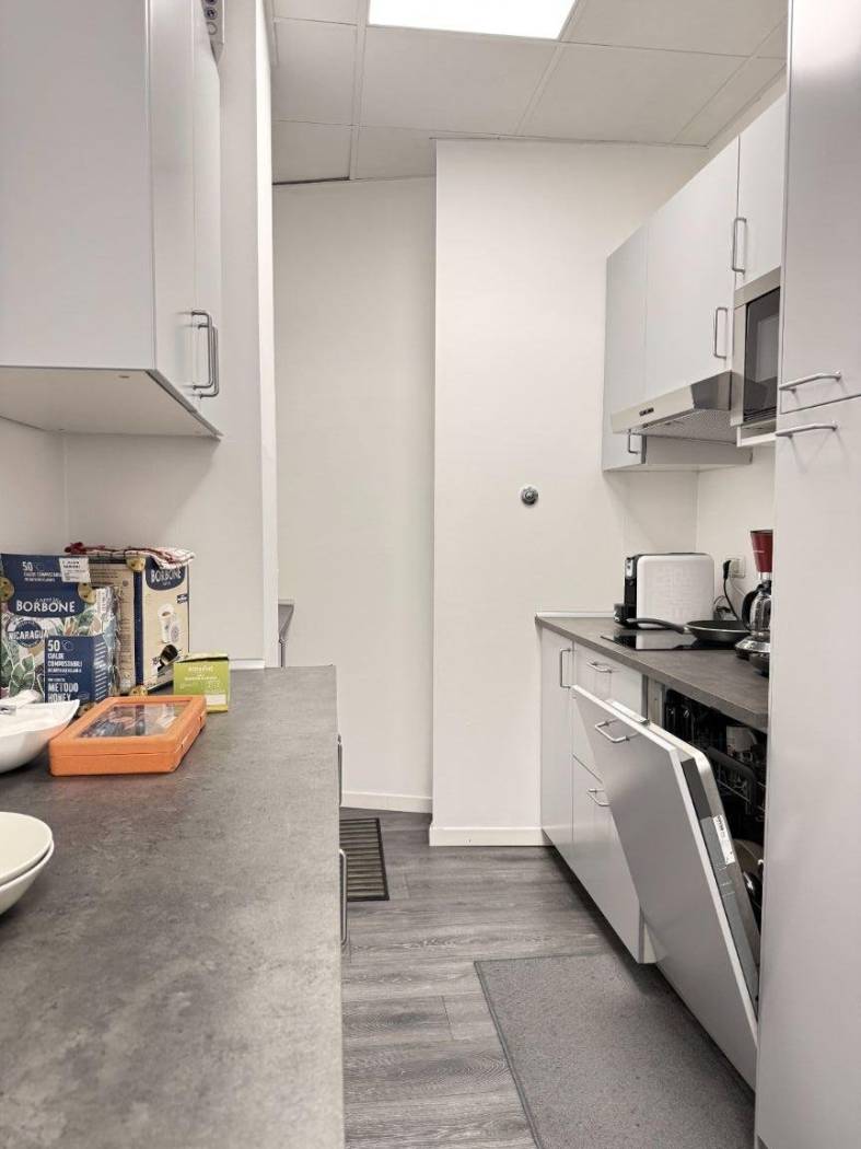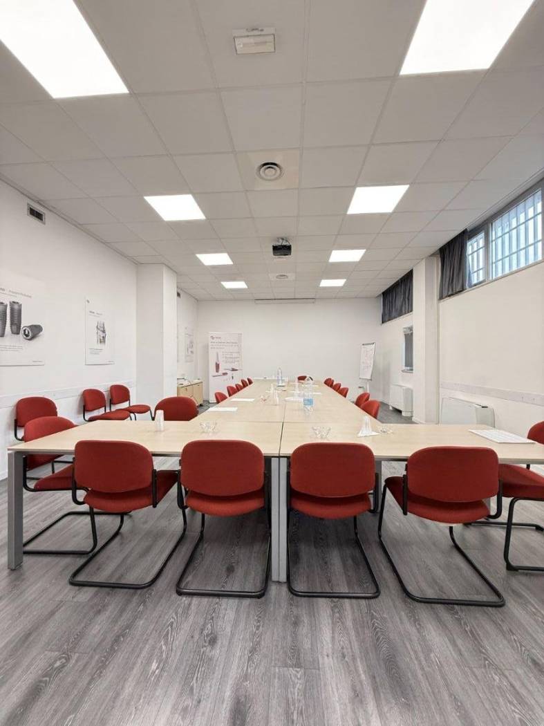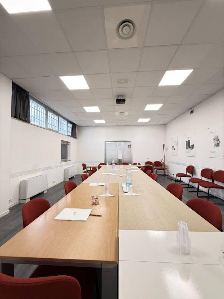 grande sala riunioni, molteplici spazi facilmente modulabili grazie a belle pareti mobili in vetro, angolo mensa/cucina già predisposto ed attrezzato